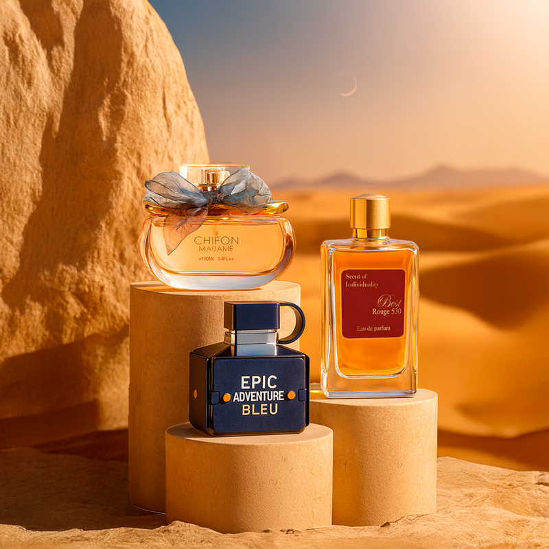 Descubre el arte de la perfumería árabe con nuestras fragancias inspiradas en el lujo. Cada aroma está cuidadosamente elaborado para envolver tus sentidos en un viaje de sofisticación y elegancia, desde notas cálidas y amaderadas hasta toques orientales exquisitos.