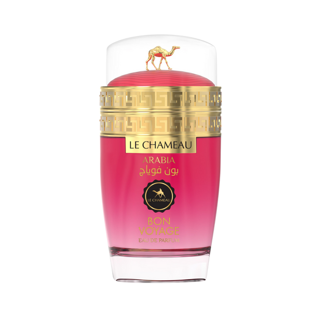 Arabia Bon Voyage es una fragancia femenina luminosa con salida de durazno, mandarina y naranja; corazón dulce de caramelo, flor de azahar y jazmín; y una base cálida de ámbar, sándalo, madera de guayaco y cedro. Ideal para primavera y verano, de día o noche, perfecta para quienes buscan un aroma alegre, elegante y fresco.