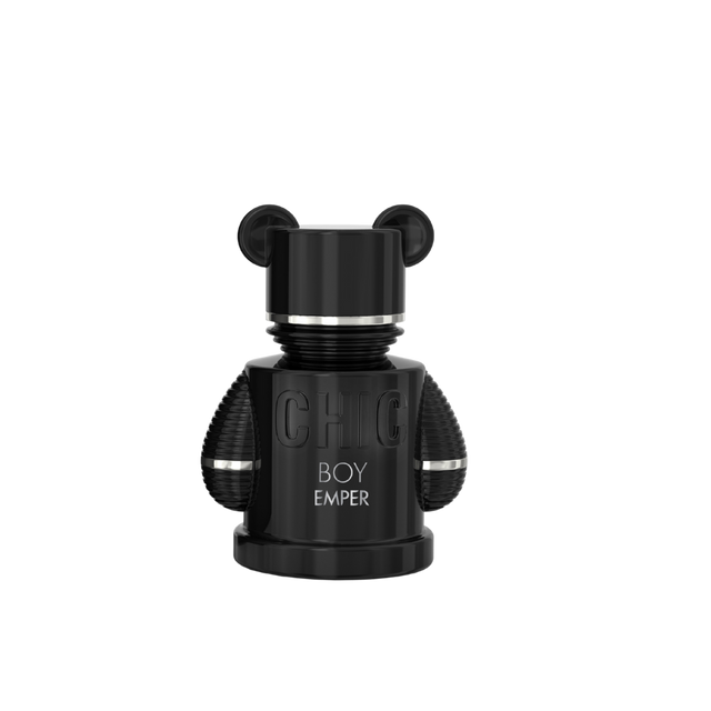 Chic Boy es una fragancia masculina sofisticada y audaz con notas de salida de pimienta rosa, pera, nuez moscada, elemi y bergamota; un corazón floral y especiado de rosa, clavo, magnolia y lino; y una base cálida y amaderada con cashmeran, vetiver haitiano, sándalo, sylkolide y ámbar. Perfecta para uso diario o en salidas nocturnas durante otoño e invierno. Creada por Emper en Dubái, Emiratos Árabes Unidos