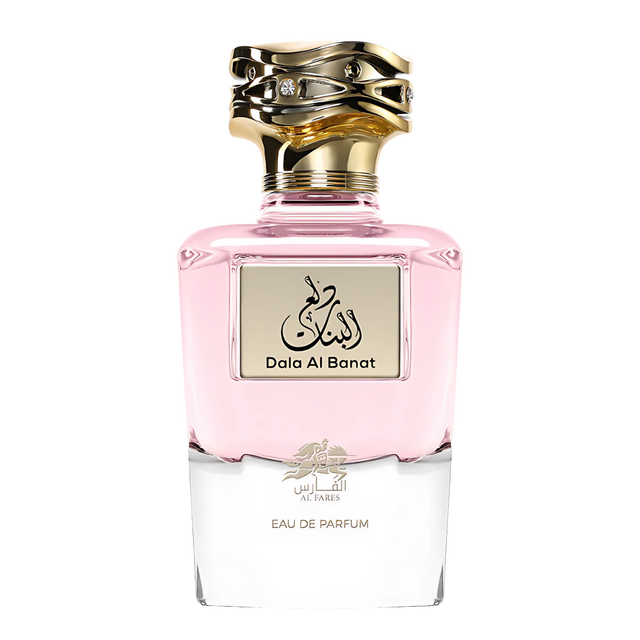 Dala Al Banat es una fragancia unisex con apertura cítrica y acuática de limón y notas de agua, corazón floral de rosa y geranio con especias como azafrán, y base amaderada de teca, guayaco, almizcle y ámbargris. Fresca, elegante y diferenciada. Origen: Emiratos Árabes Unidos