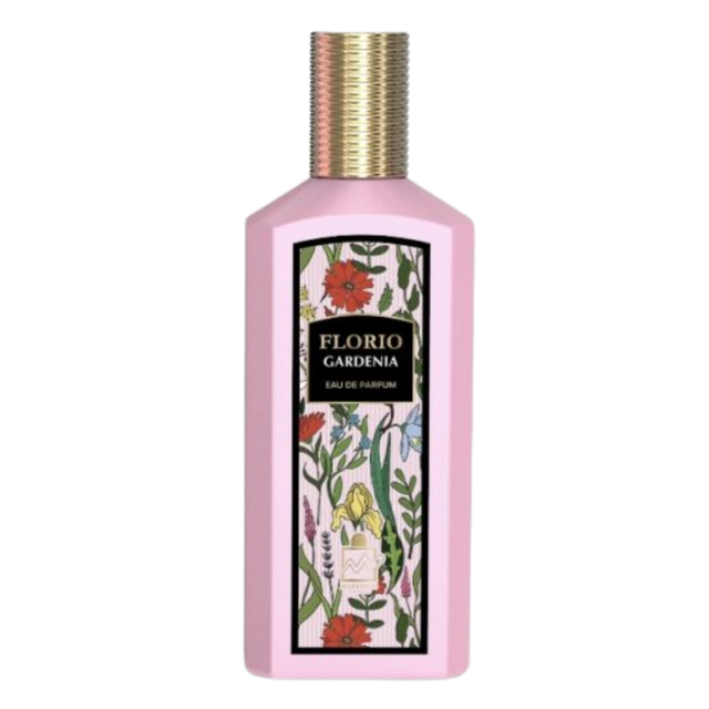 Florio Gardenia es una fragancia femenina refinada con notas de salida de pera blossom, corazón de gardenia y jazmín, y fondo dulce de azúcar morena y patchouli. Perfecta para primavera/verano, ideal para ocasiones elegantes de día. Origen: Dubái, EAU.