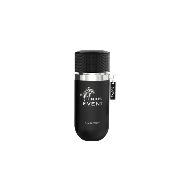 Genius Event es una fragancia masculina vibrante inspirada en Creed Aventus, con notas de salida de piña, bergamota, grosella negra y manzana; un corazón sofisticado de abedul, patchouli, jazmín marroquí y rosa; y un fondo cálido de almizcle, musgo de roble, ámbar gris y vainilla. Perfecta para otoño e invierno, destaca tanto en el día como en la noche por su carácter audaz y elegante. Es una creación de Emper, perfumes con sede en Dubái, Emiratos Árabes Unidos.