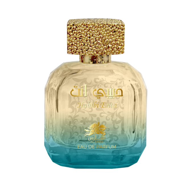 Habibi Enta de Al Fares es una fragancia unisex cautivadora, con apertura especiada de anís, albahaca y olíbano; corazón dulce y cremoso de vainilla, madera de cashmere y rosa; y fondo envolvente de almizcle, ámbar y oud indio. Es una composición romántica y misteriosa, ideal para uso nocturno en otoño‑invierno o climas templados. Origen: Emiratos Árabes Unidos