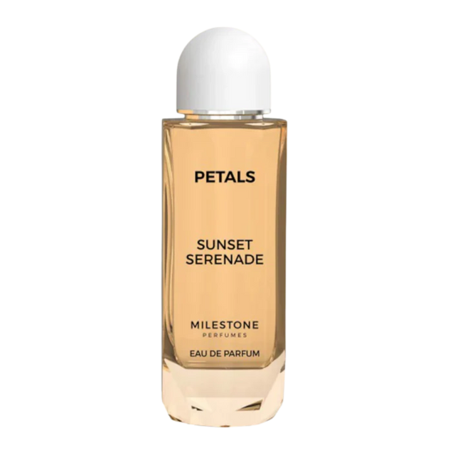 Petals Sunset Serenade de Millestone es una fragancia femenina con carácter frutal y floral dulce, evocando atardeceres cálidos. Notas específicas no confirmadas; perfil alineado con la colección, ideal para primavera/verano y salidas vespertinas. Origen: Dubái, EAU.